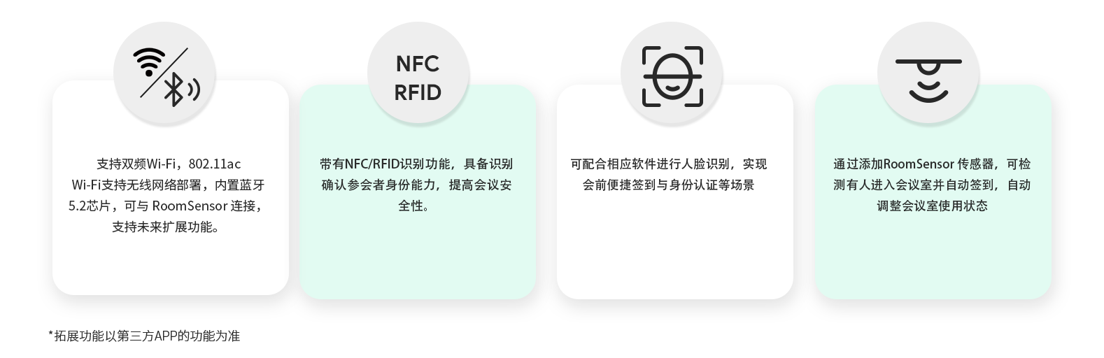 与此同时,新一代RoomPanel Plus可作为网关,连接会议室传感器,并自动更新会议室的日程安排,更智能更人性化的设计让您享受舒适、愉悦的会议体验。